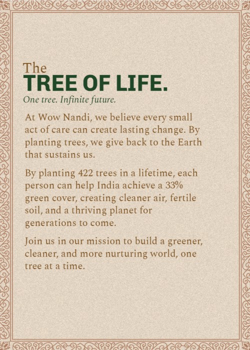 Join Nandi's initiative, TREE FOR LIFE, dedicated to preserving our precious soil by planting 10 million trees across India. Through brand partnerships and public participation, we aim to foster a green cover for urban India, making our planet sustainable and combating the effects of global warming. Inside this beautiful pack, you'll find everything you need to contribute to this noble cause. A Panchgavya pot, filled with a nutritious proposition for the healthy growth of plants, combined with high-quality cocopeat soil and a variety of seeds carefully selected to suit your preferences and environmental conditions. Not only is this pack an excellent gift, but it also serves as a goodwill gesture, an opportunity for institutional CSR activities, corporate gifting, birthdays, weddings, or as a thoughtful return gift. By embracing this initiative, you enhance your character through "swabhaav se prabhaav" – making a positive impact on both the environment and society. Let's come together and be part of TREE FOR LIFE, planting seeds of change that will blossom into a greener, more sustainable future for all. Act now and make a difference.